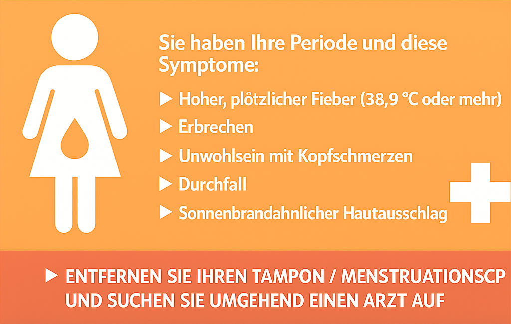 Das staphylokokkenbedingte toxische Schocksyndrom (TSS) ist eine seltene, aber schwere akute Erkrankung, die während der Menstruation bei der Verwendung von vaginalen Hygieneprodukten (Tampons, Menstruationstassen) auftreten kann.